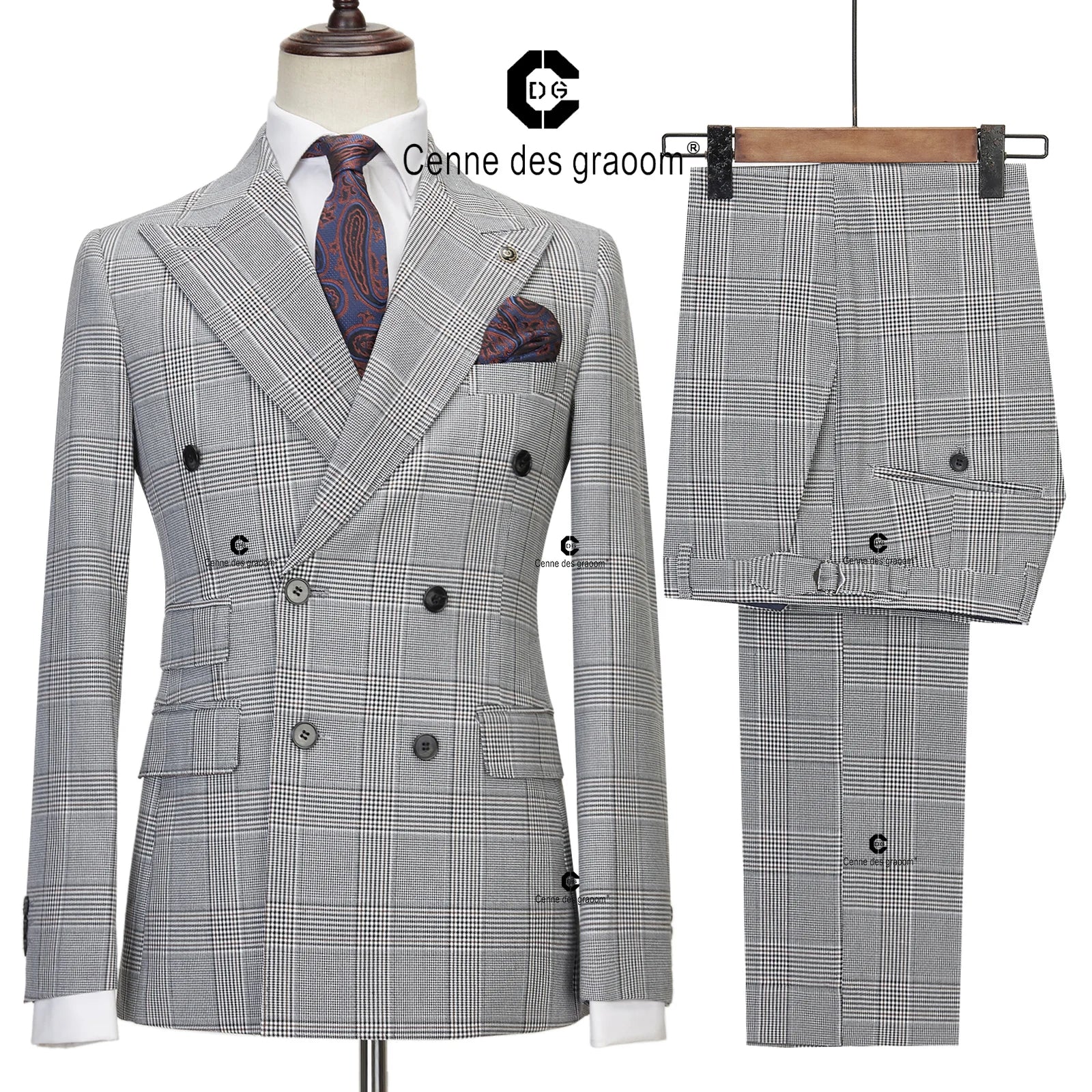 Costume classique pour homme Cenne Des Graoom 2025, ensemble 2 pièces à carreaux, veste croisée vintage, gilet et pantalon, pour bureau, affaires, mariage