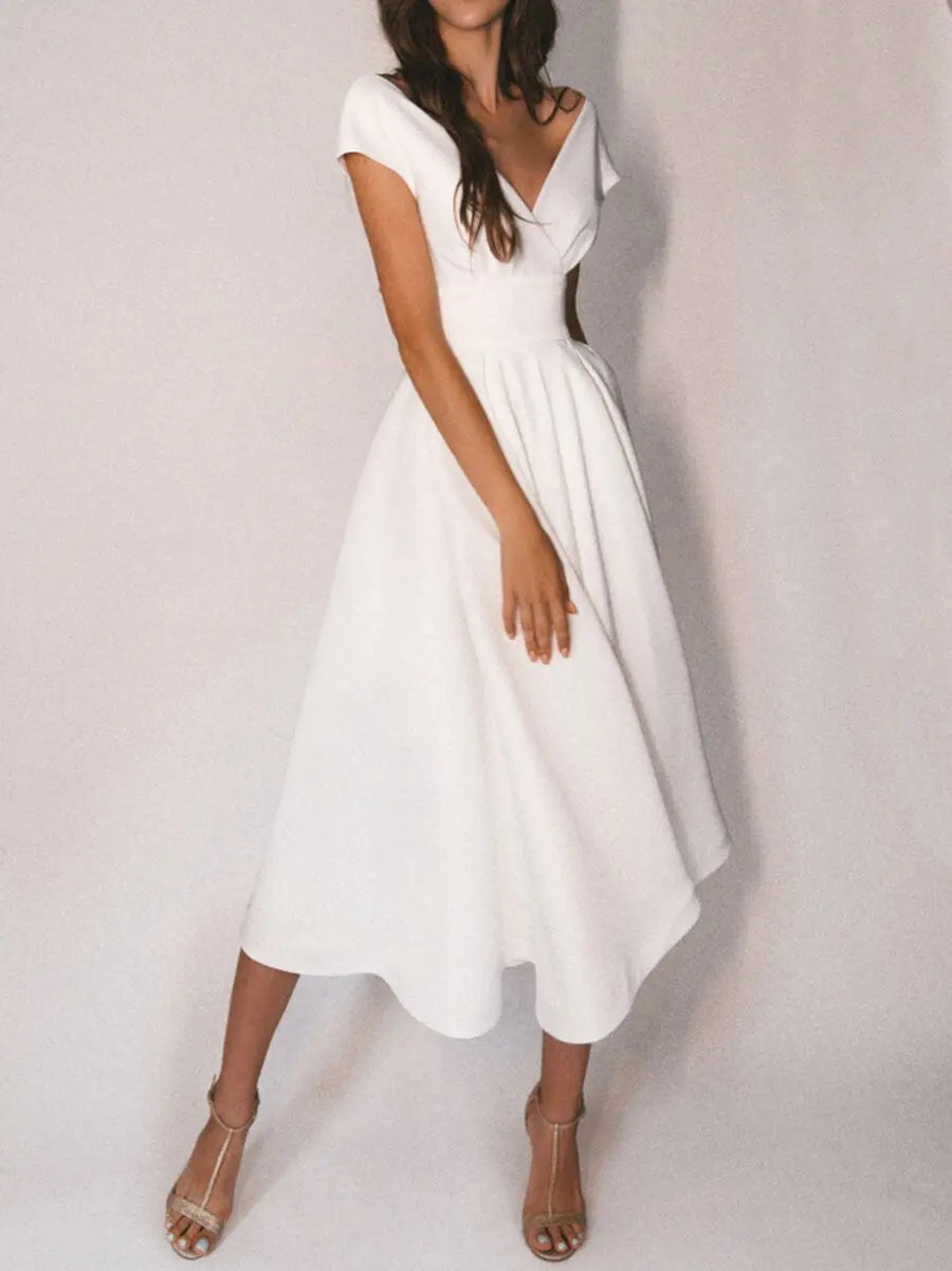 Elegant Dresses for women autumn Sexy White Dress Hollow Chiffon Short Sleeve V-Neck Long Dress