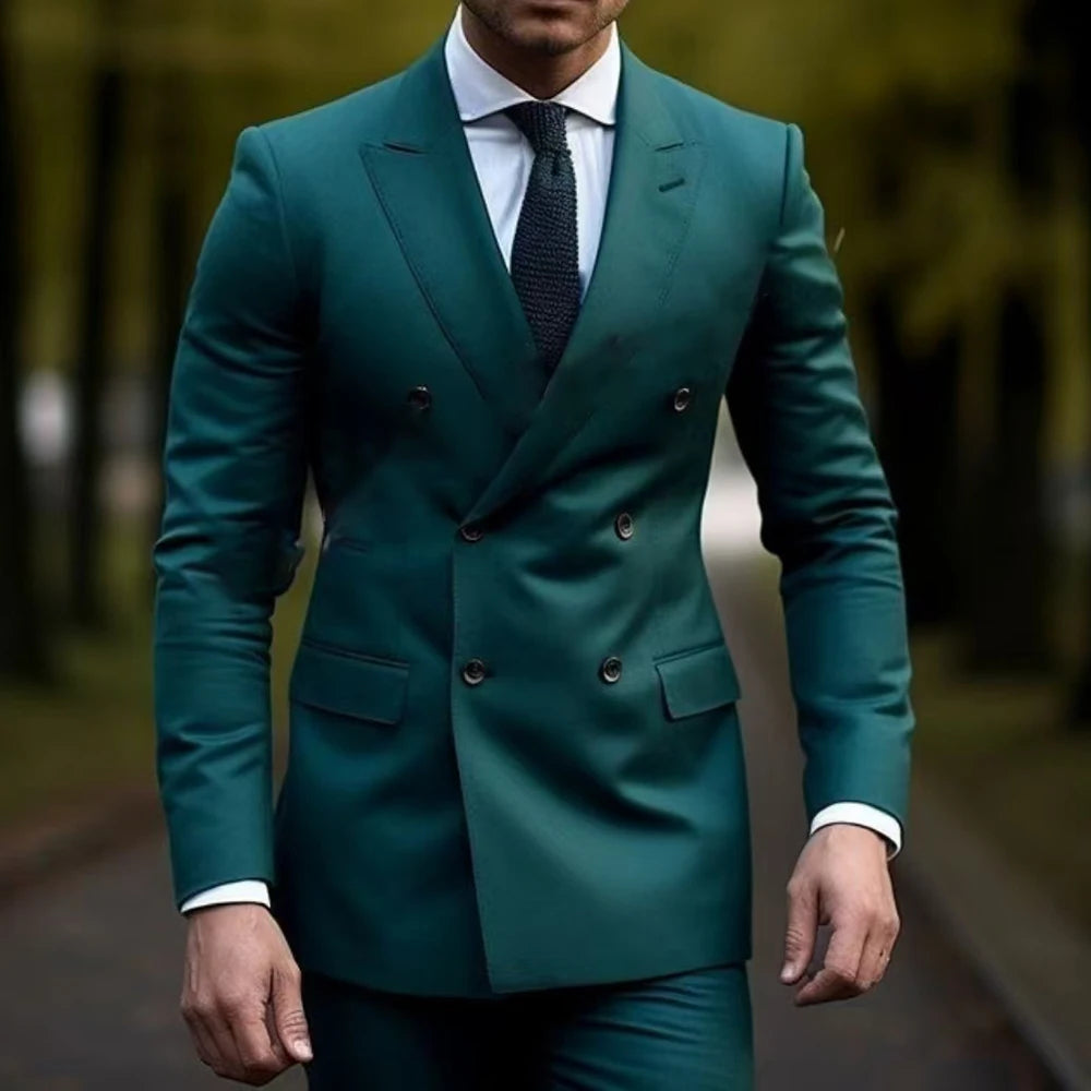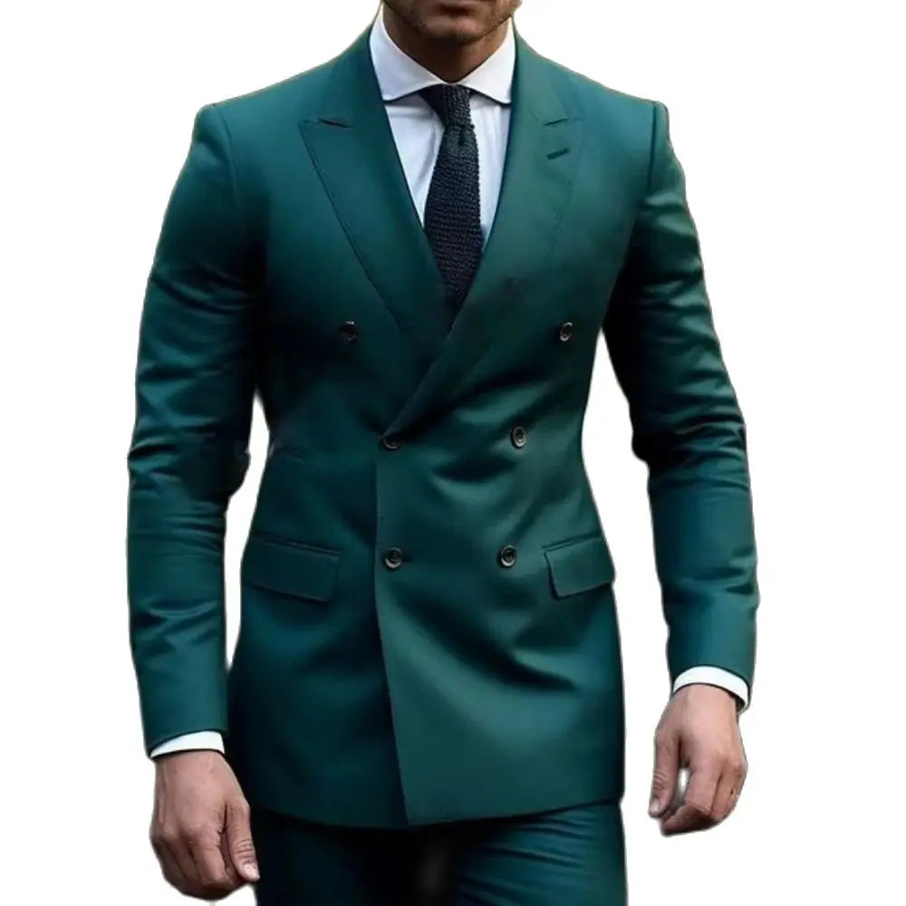 Blazer 2 pièces à double boutonnage pour homme, coupe slim, longueur standard, revers en pointe, pour mariage, 2024