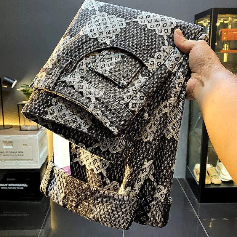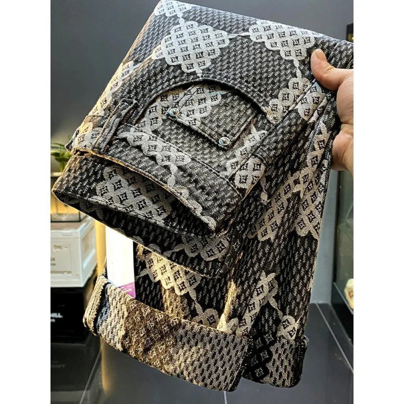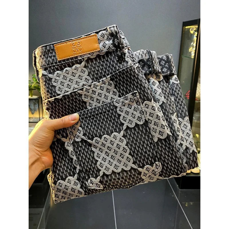 Jean jacquard haut de gamme pour hommes et femmes, automne-hiver, nouveau style, design de mode, tube droit, pantalon décontracté américain