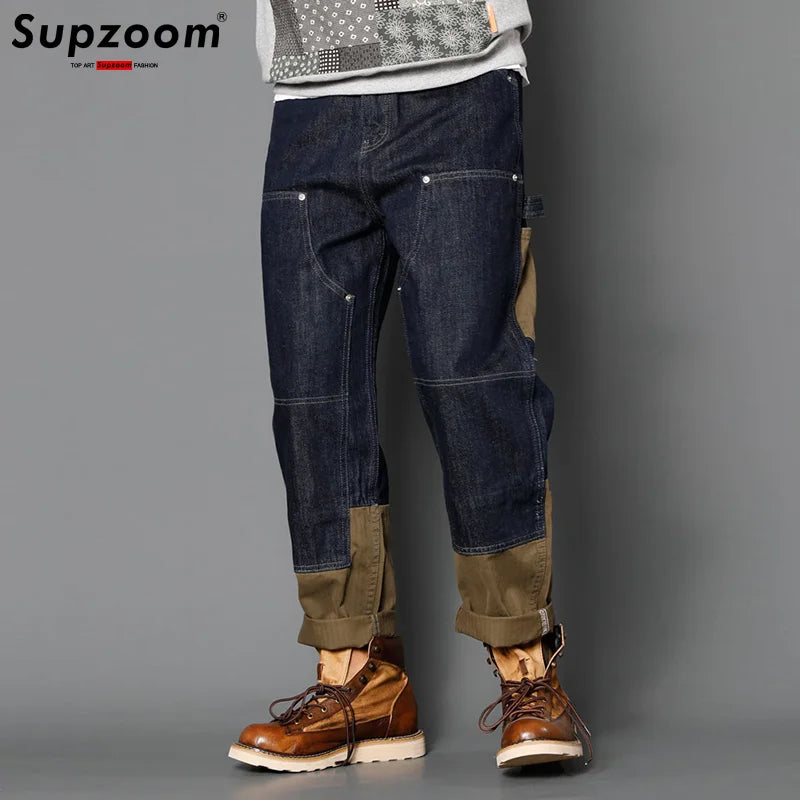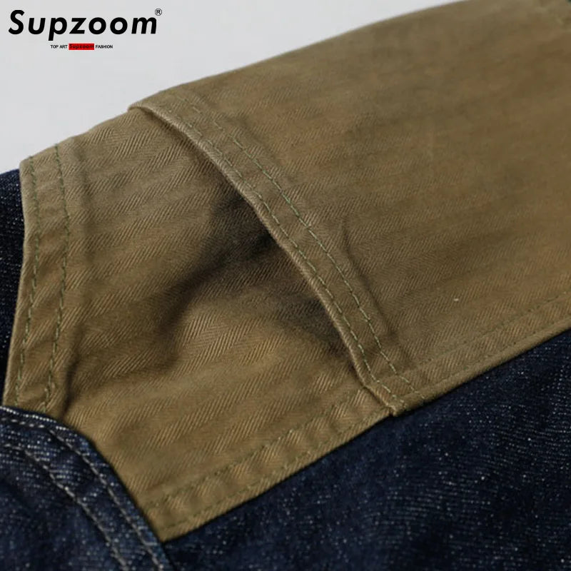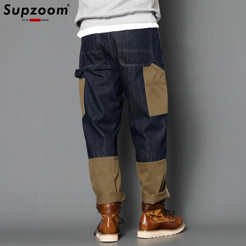 Supzoom Nouveauté Vente Chaude Top Mode Automne Fermeture Éclair Braguette Délavé Décontracté Patchwork Cargo Denim Poches Coton Jeans Hommes